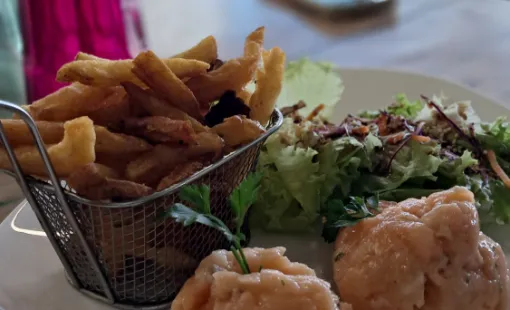 Venez découvrir notre tartare de saumon accompagné de ses frites fraîches et sa salade